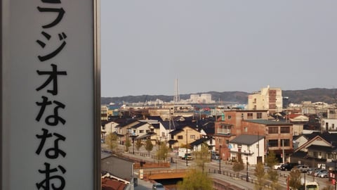 ラジオななおの看板の、最初の「な」の字の右側、
