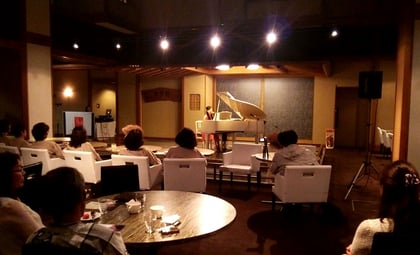 壁一面がガラス張りで海に面した会場、すごくいい雰囲気です。