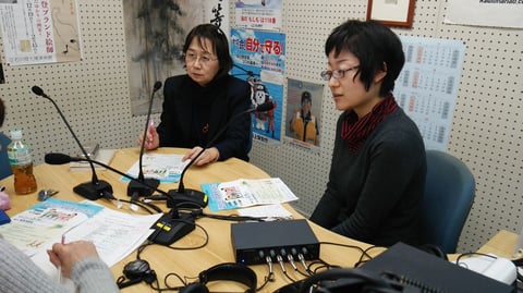 出演、まずは、健康推進課の山岸さん(写真左)と、金沢大学の柚木さん(右)