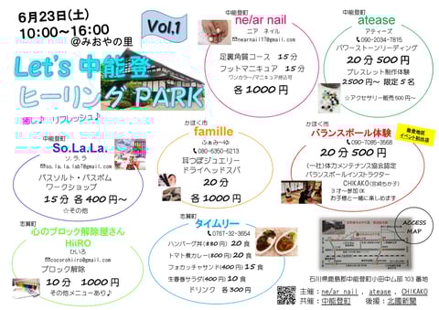 Let's中能登ヒーリングPARKのお知らせ、12時15分前後からです。