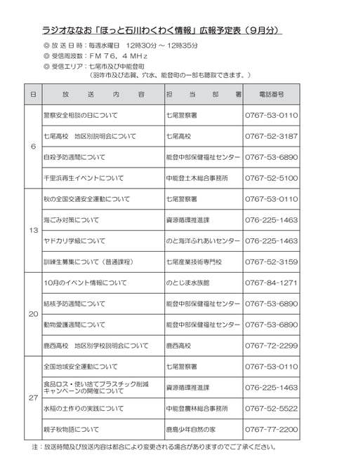 9月のほっと石川わくわく情報